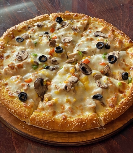 سینه مرغ، پنیرمیکس ،فلفل دلمه، قارچ، سس خامه